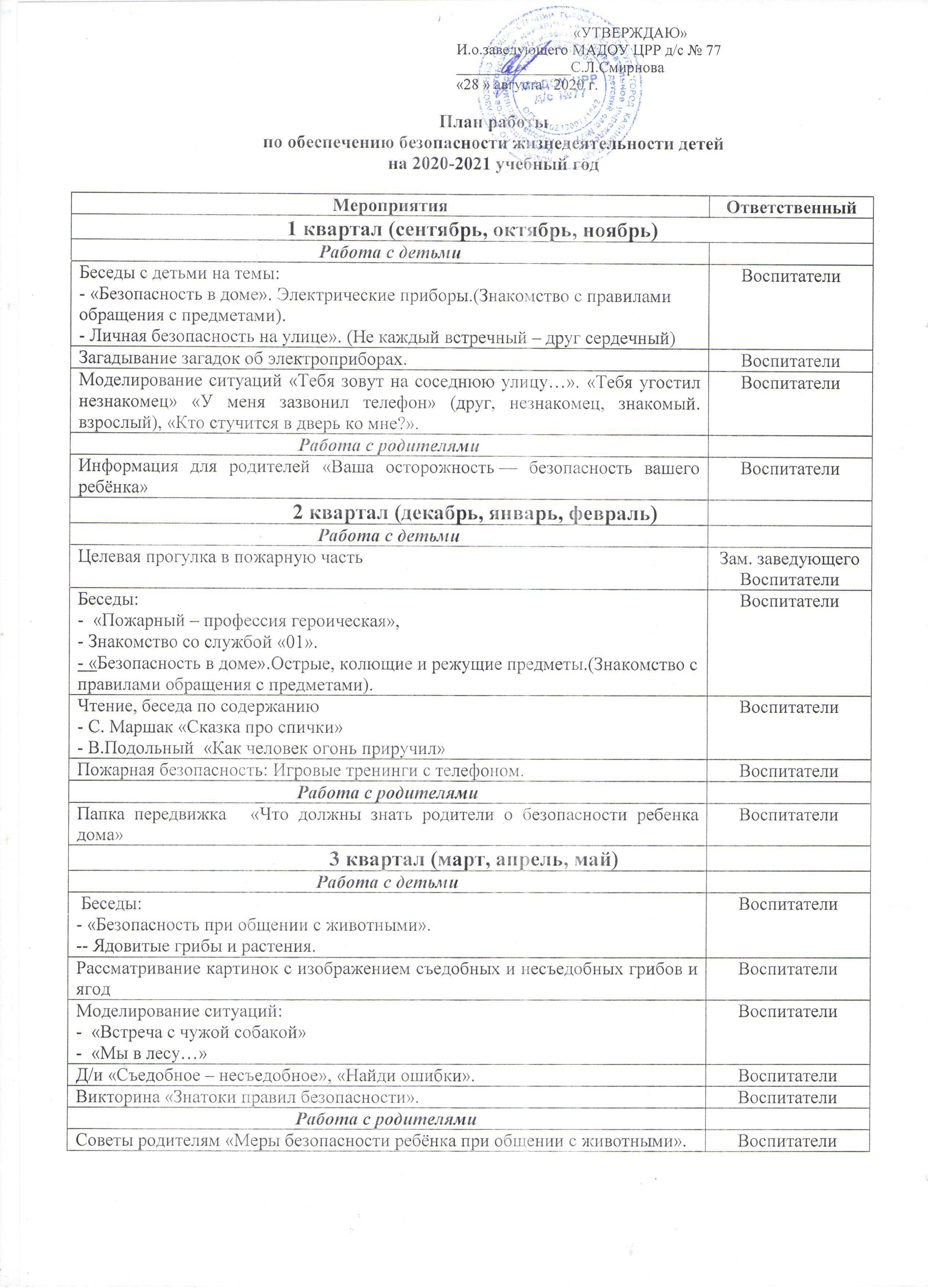 План работы по обеспечению безопасности жизнедеятельности детей